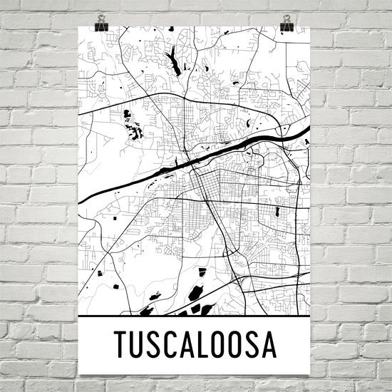 Tuscaloosa AL Street Map Poster Wall Print by Modern Map Art