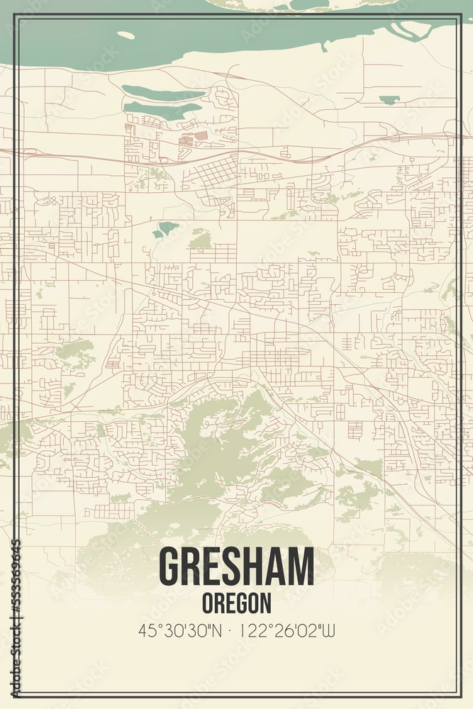 Retro US city map of Gresham, Oregon. Vintage street map. Stock